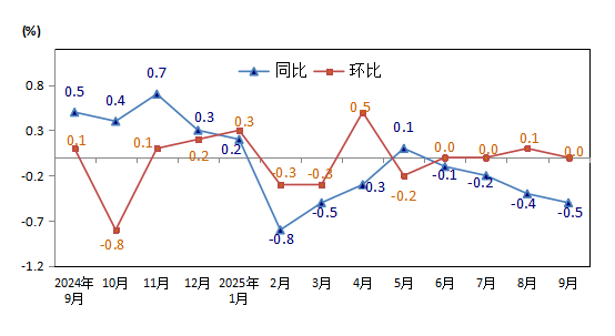 9月份昌吉市居民消费价格同比下降0.5% 环比与上月持平