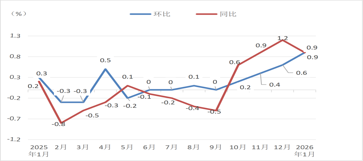 2026年1月份昌吉市居民消费价格同比上涨0.9%