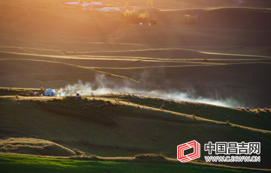 初秋时节的江布拉克景区,远处雪山高耸入云,脚下林海草原茫茫无际。积雪的山峰、绿色的松林、盛开的山花,把江布拉克景区装扮得色彩斑斓,风光无限。记者 何龙 摄