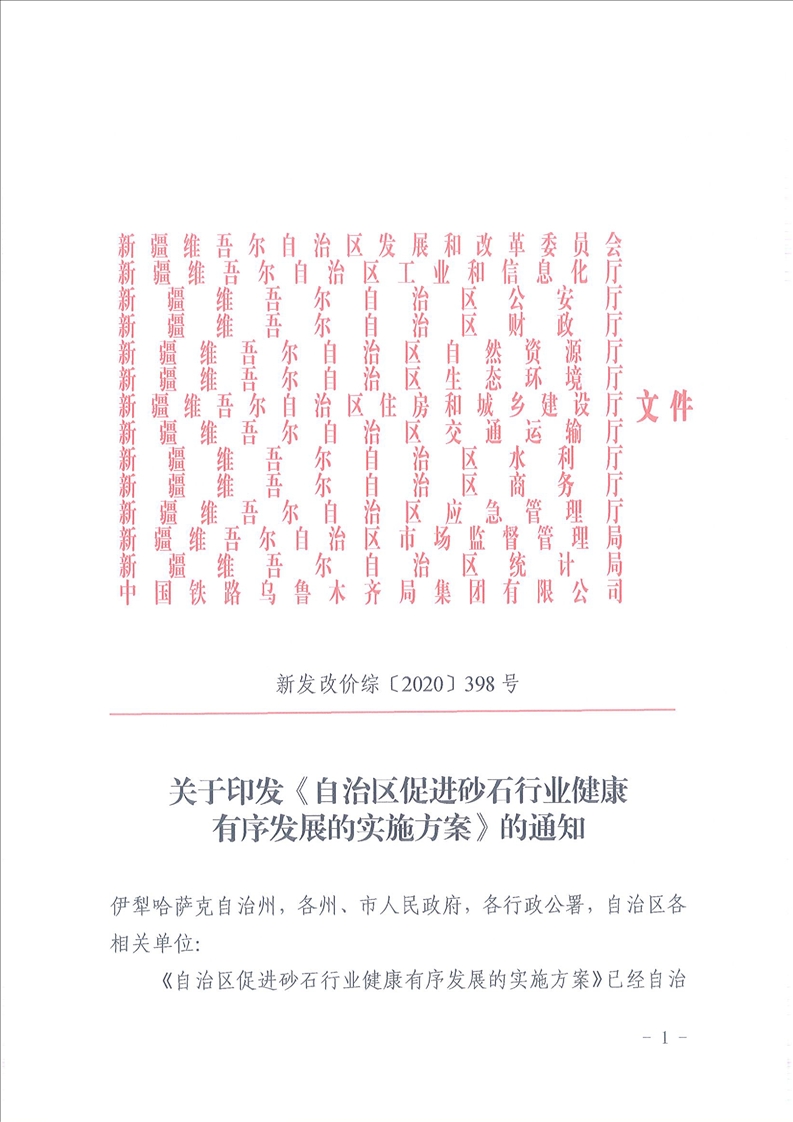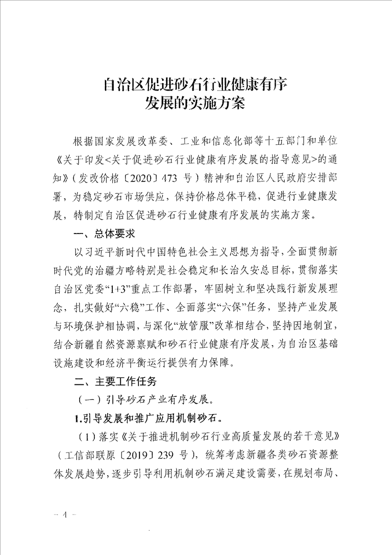关于印发《自治区促进沙石行业健康有序发展的实施方案》的通知