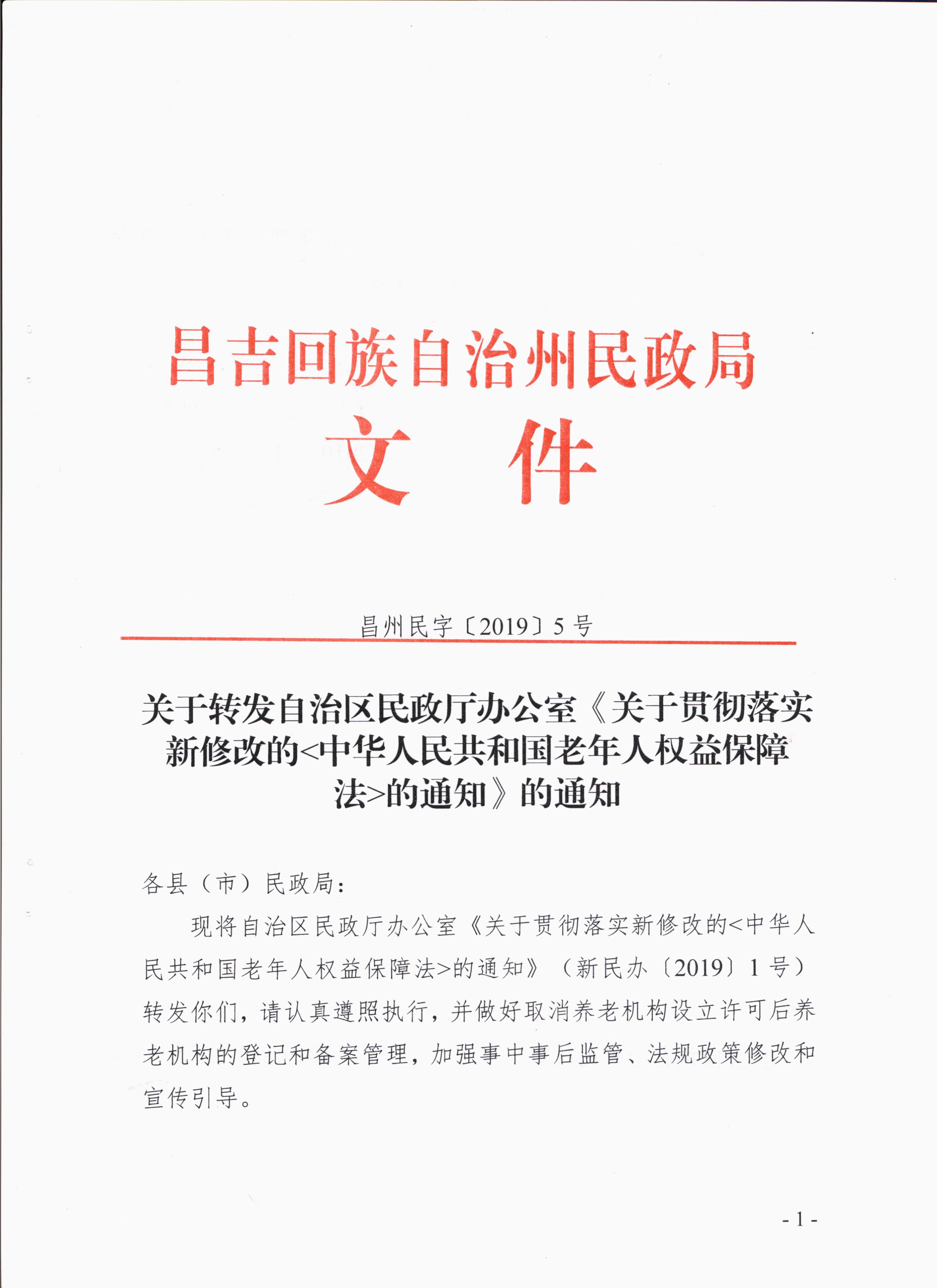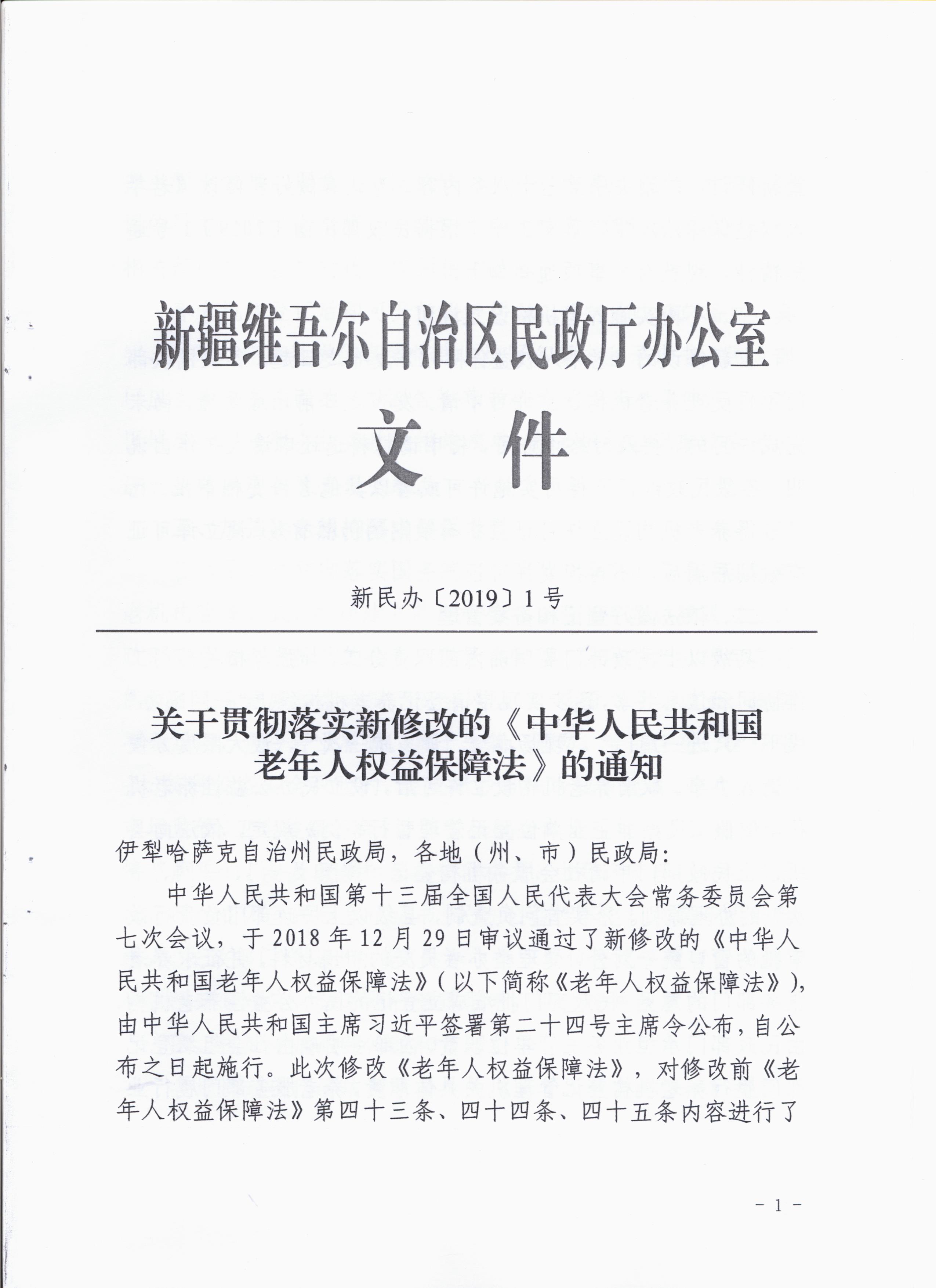关于转发自治区民政厅办公室《关于贯彻落实新修改的中华人民共和国老年人权益保障法的通知》的通知