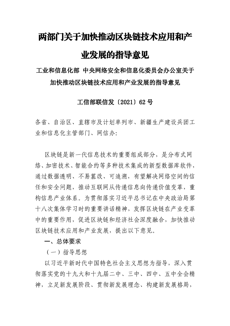 两部门关于加快推动区块链技术应用和产业发展的指导意见