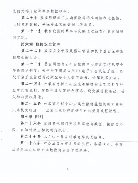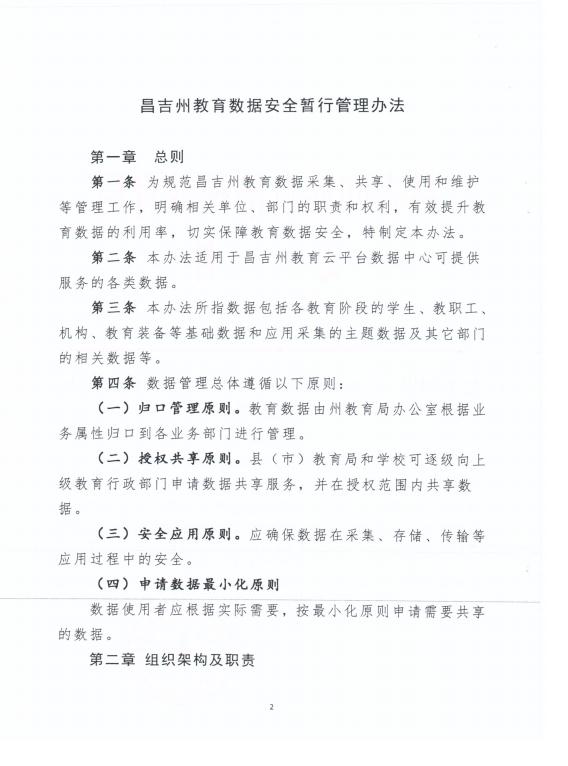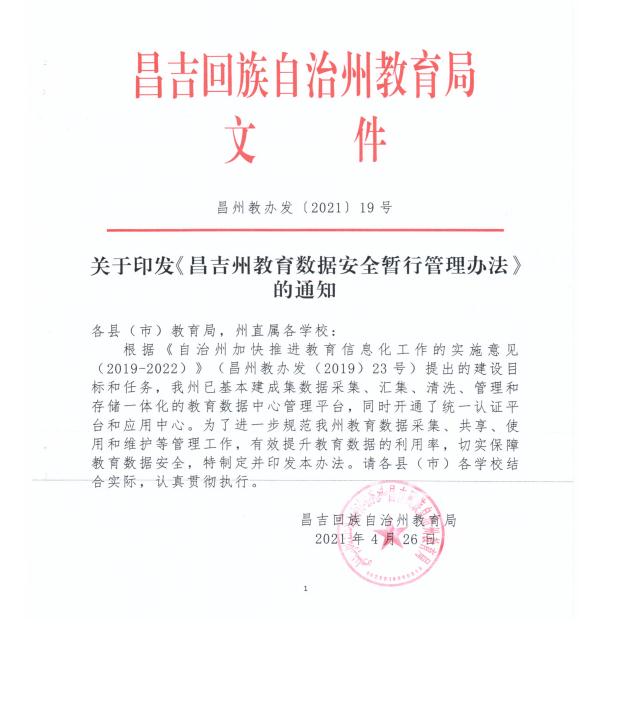 关于印发《昌吉州教育数据安全暂行管理办法》的通知