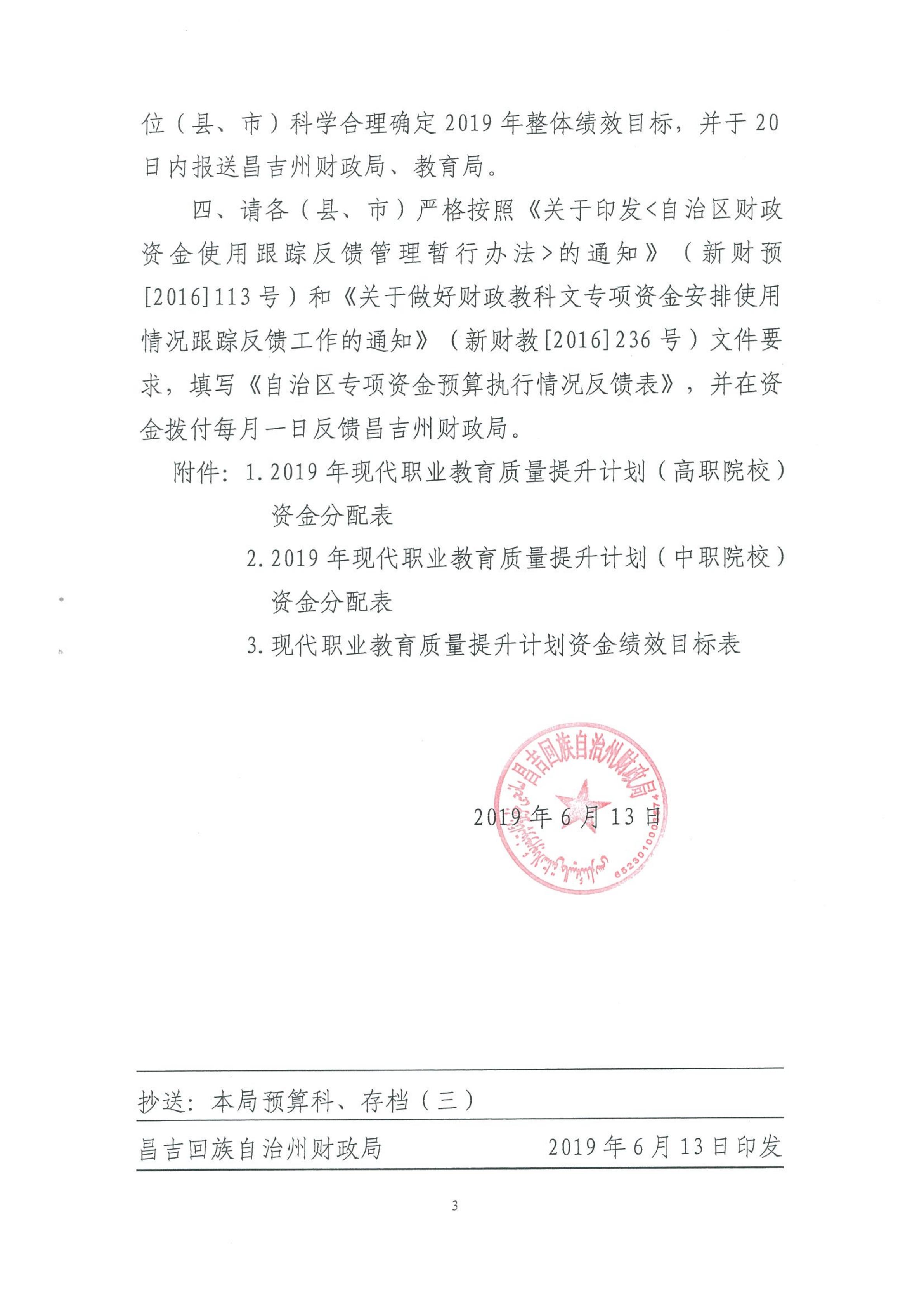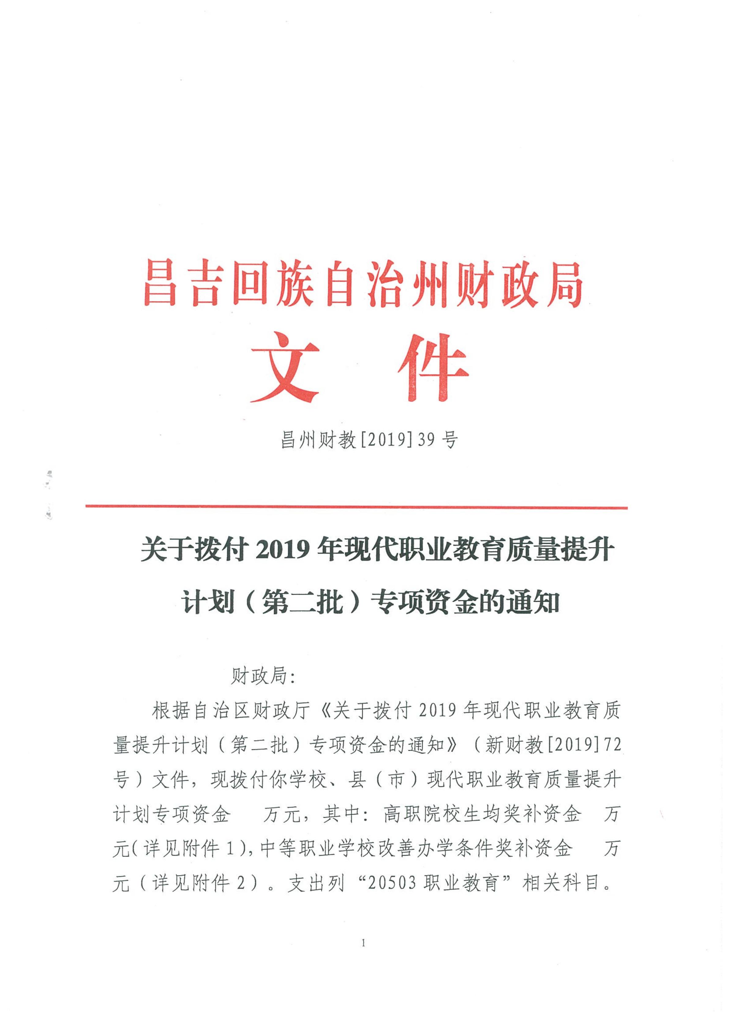 昌州财教【2019】39号 拨付2019年现代职业教育质量提升计划(第二批)专项资金 新财教【2019】72号