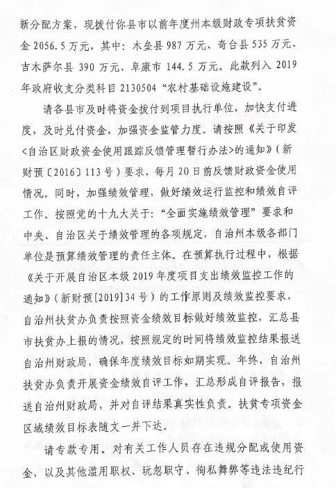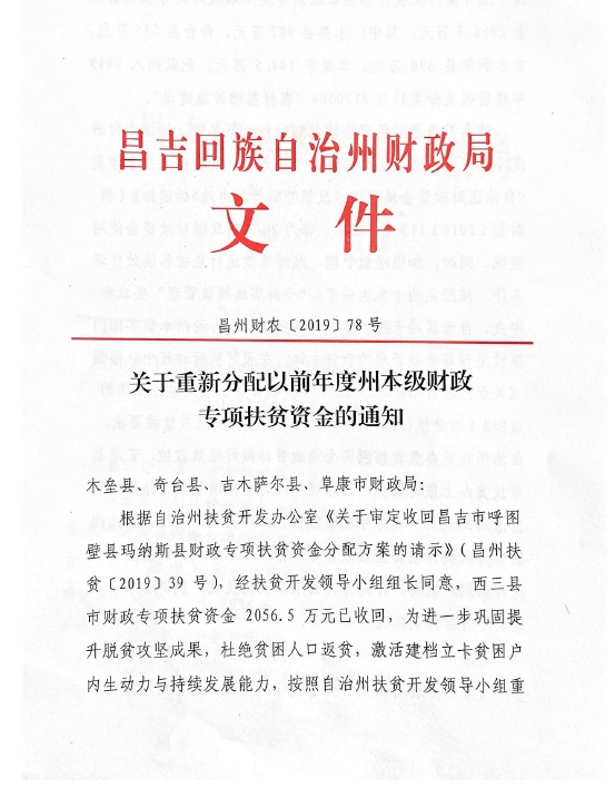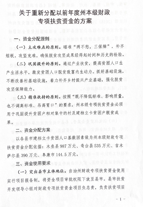 关于重新分配以前年度州本级财政专项扶贫资金的通知