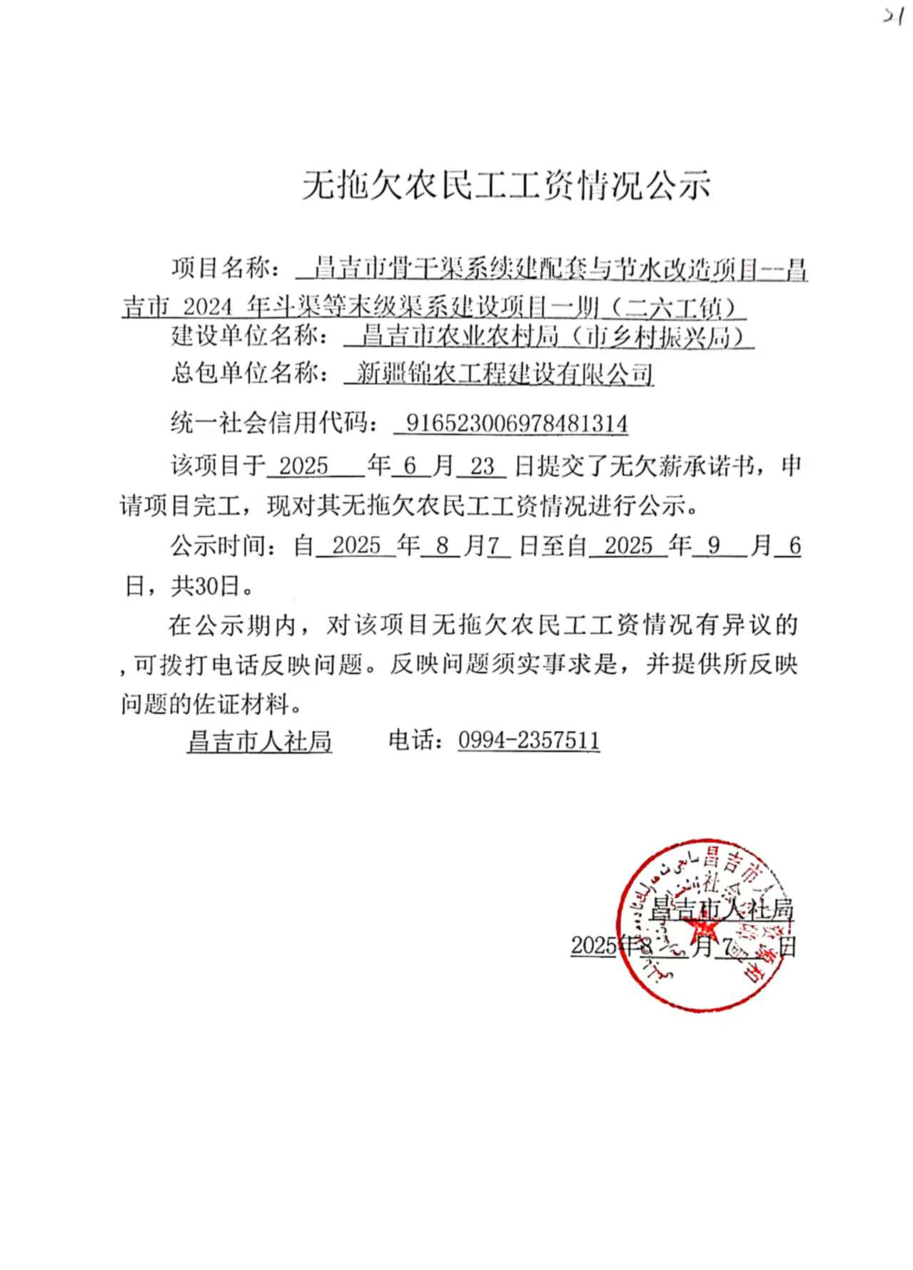 无拖欠农民工工资情况公示