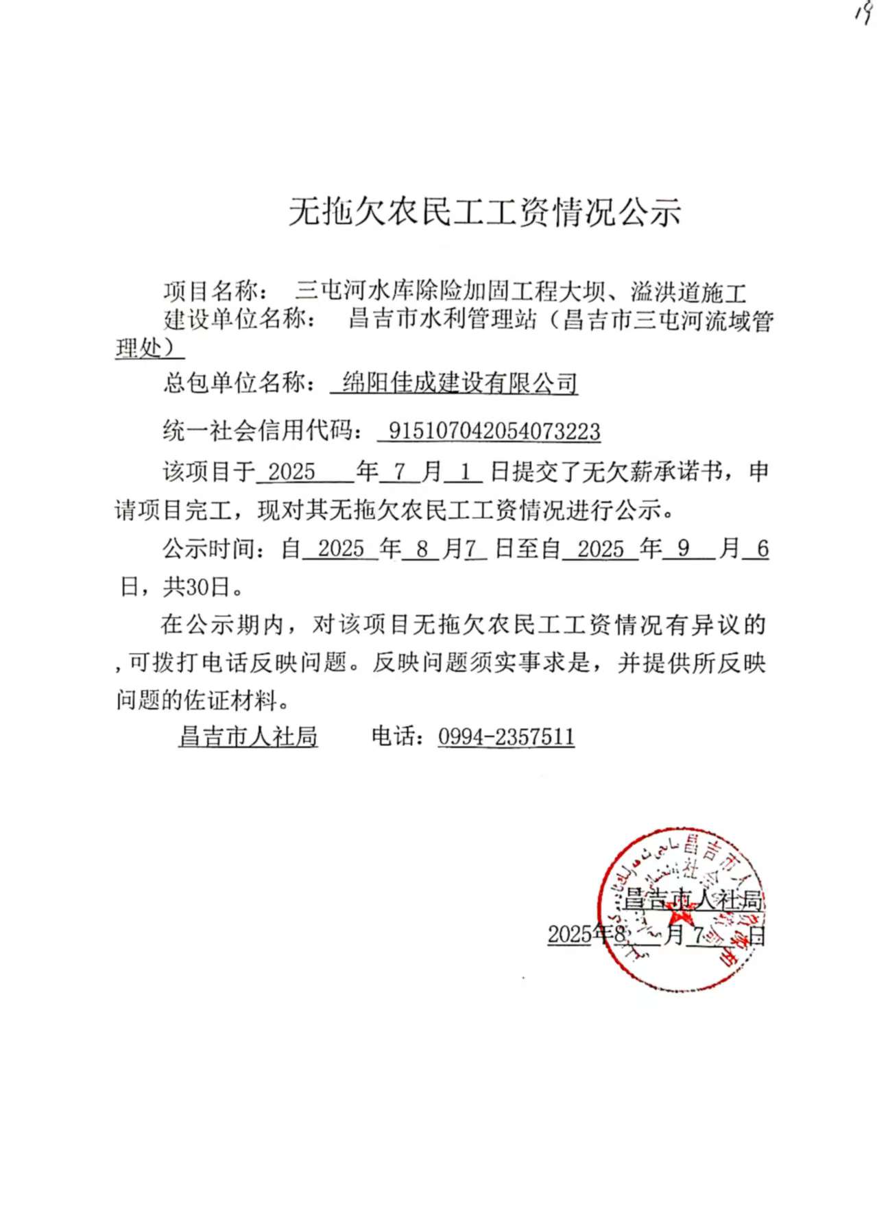 无拖欠农民工工资情况公示