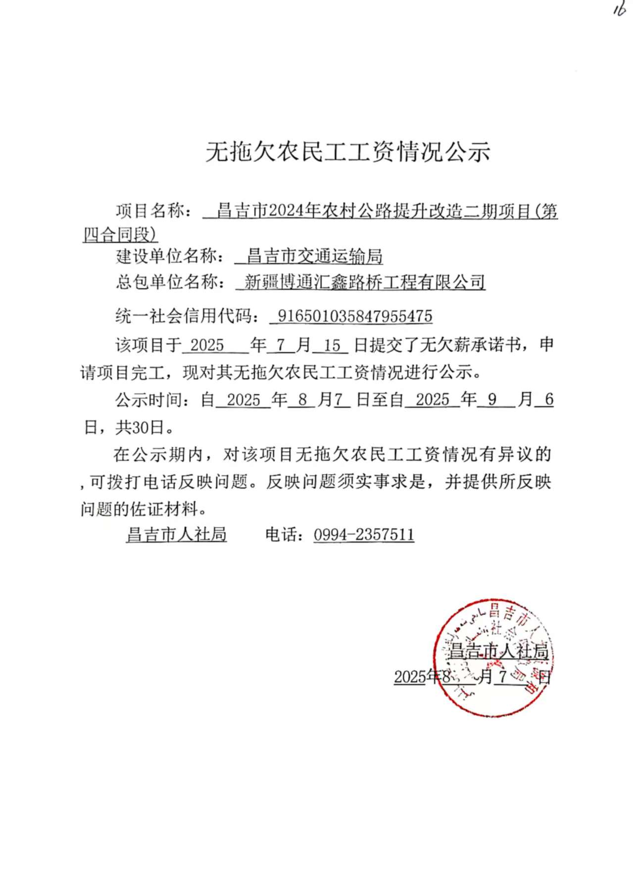 无拖欠农民工工资情况公示