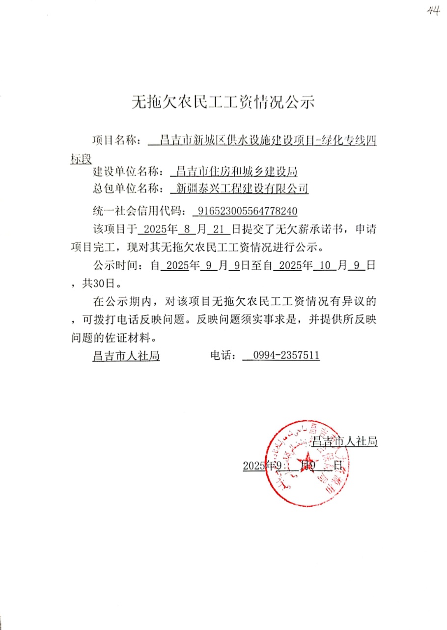 无拖欠农民工工资情况公示