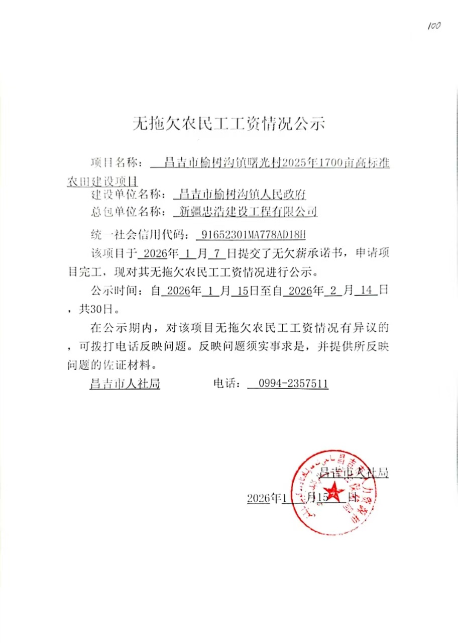 无拖欠农民工工资情况公示