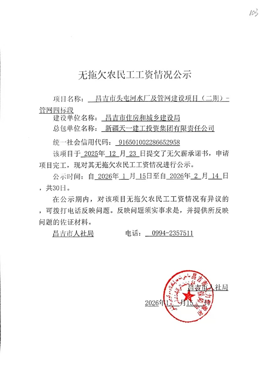 无拖欠农民工工作情况公示