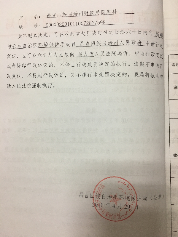 新疆远兴机械制造有限公司环境违法行为行政处罚文书