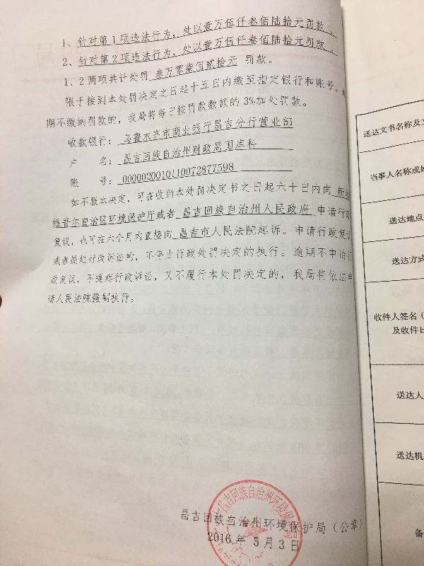 昌吉高新科创污水处理有限公司环境违法行为行政处罚文书