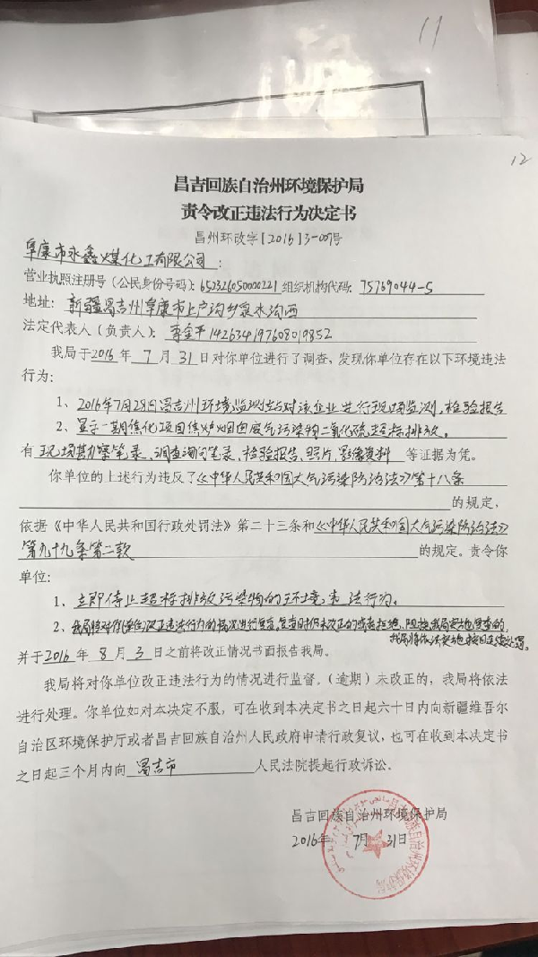 永鑫煤化有限公司责令改正违法行为决定书.jpg