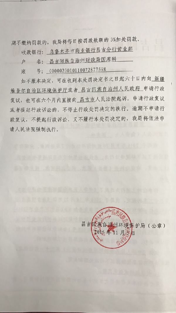 昌吉市粒粒康豆制品有限公司环境违法行为行政处罚文书