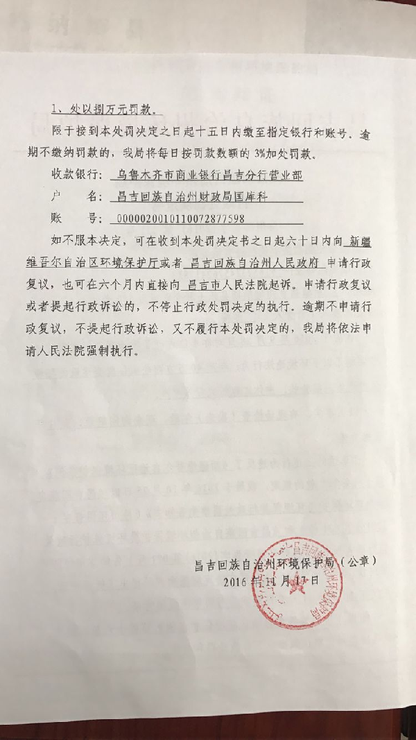 玛纳斯县昊亮新型节能有限责任公司环境违法行为行政处罚文书