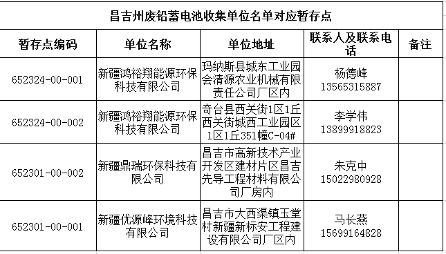 昌吉州废铅蓄电池收集单位名单对应暂存点