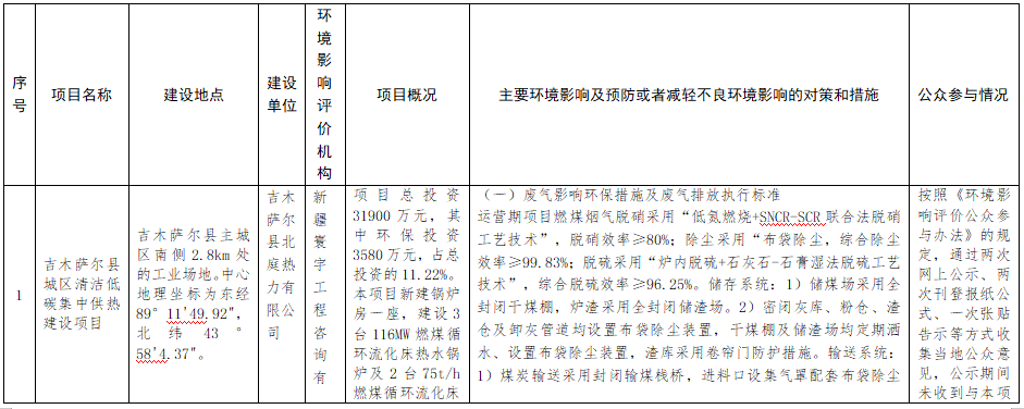 拟审批公示(2023.5.11-5.17书)吉木萨尔县城区清洁低碳集中供热建设项目