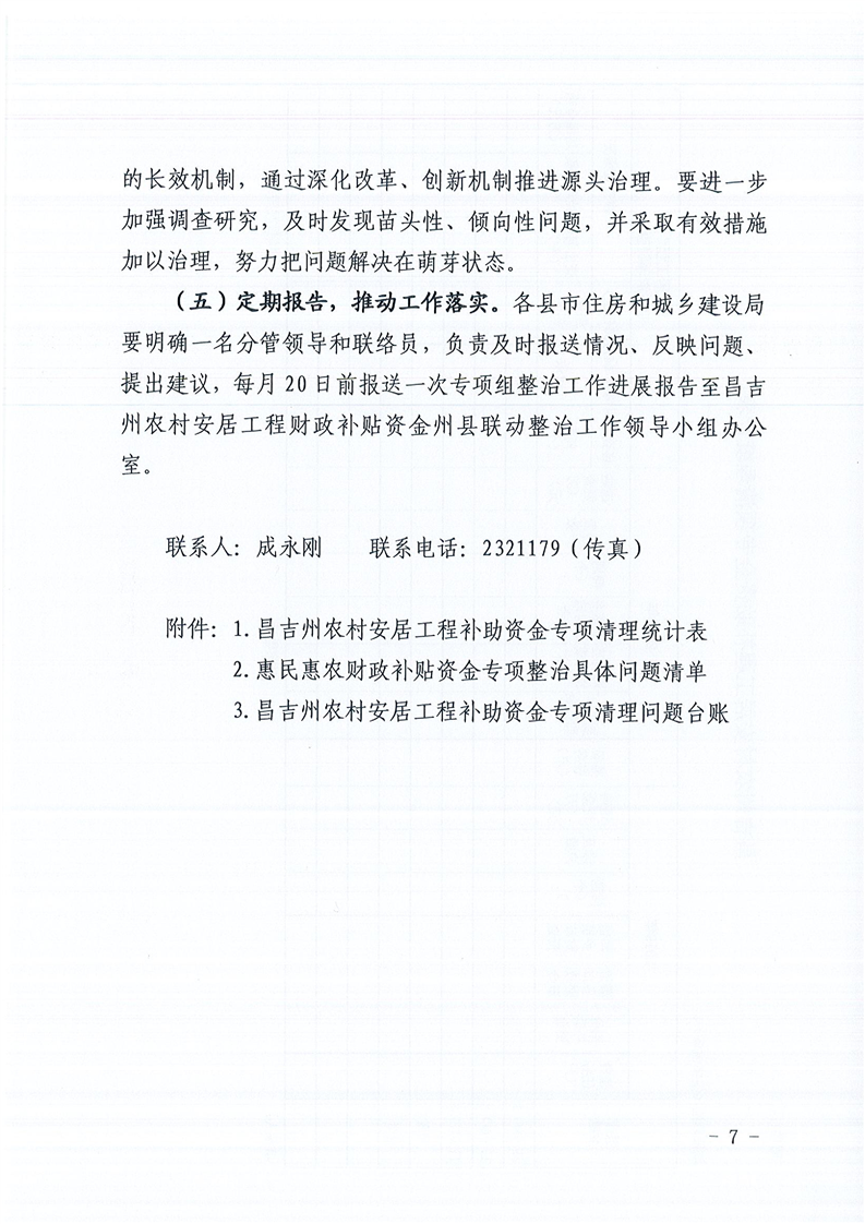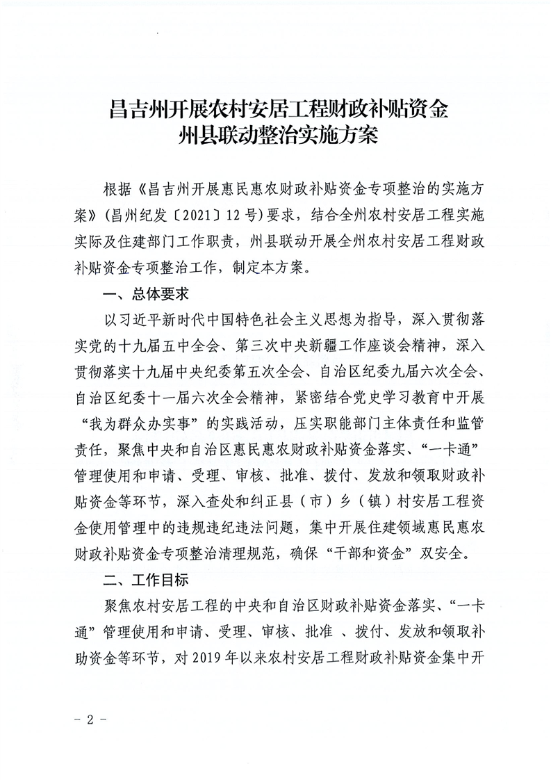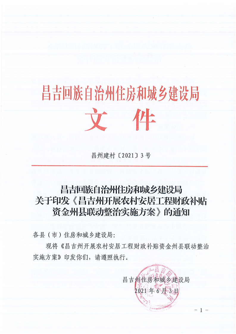 关于印发《昌吉州开展农村安居工程财政补贴资金州县联动整治实施方案》的通知