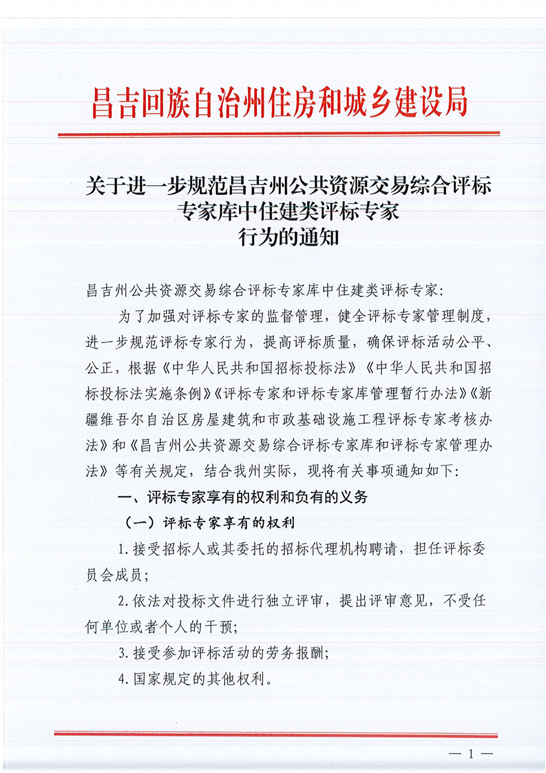 关于进一步规范昌吉州公共资源交易综合评标专家库中住建类评标专家行为的通知