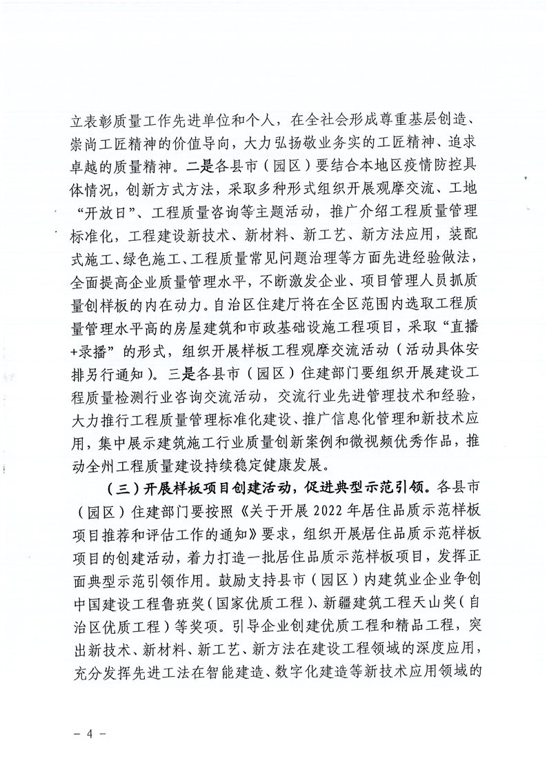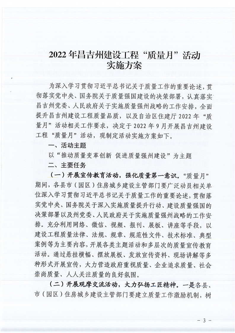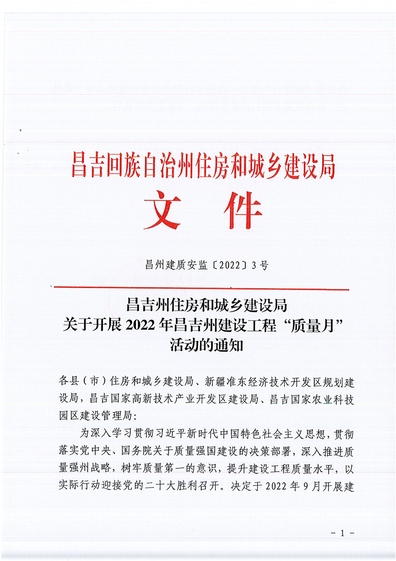 昌吉州住房和城乡建设局关于开展2022年昌吉州建设工程“质量月”活动的通知