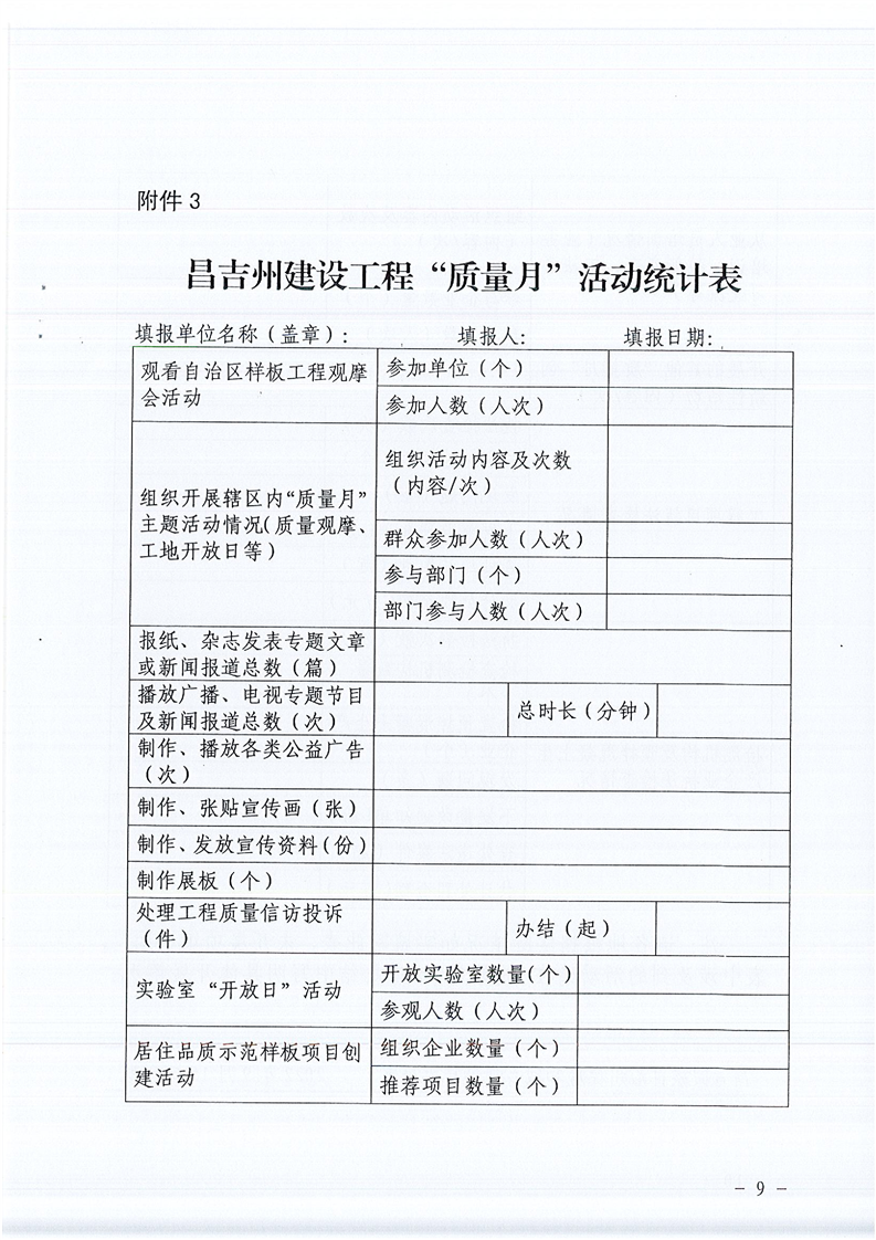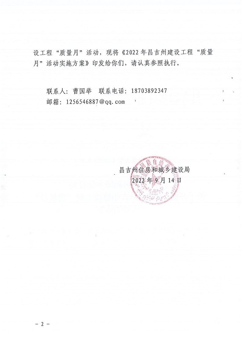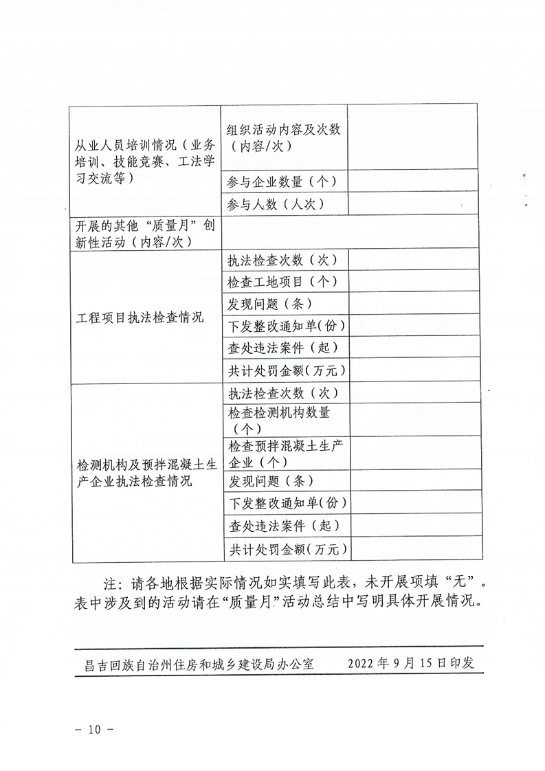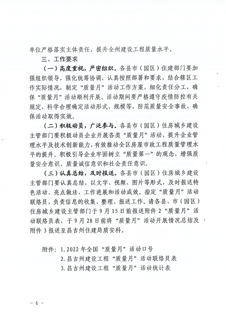 昌吉州住房和城乡建设局关于开展2022年昌吉州建设工程“质量月”活动的通知