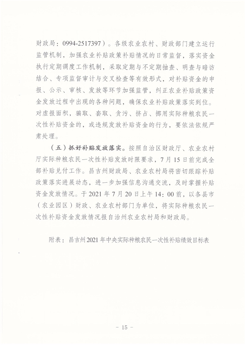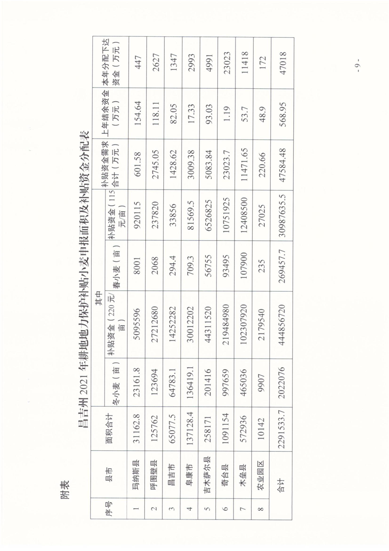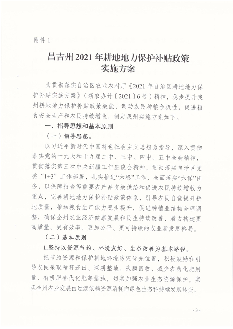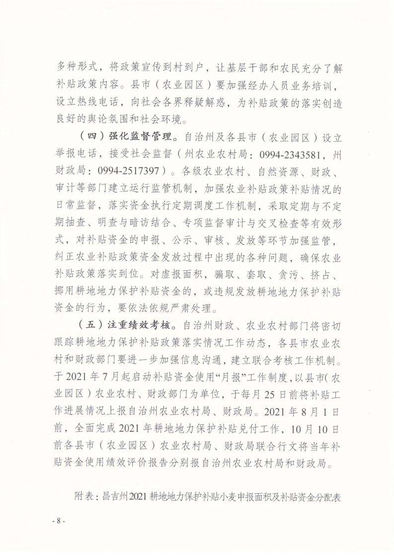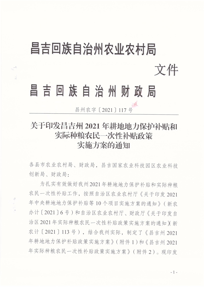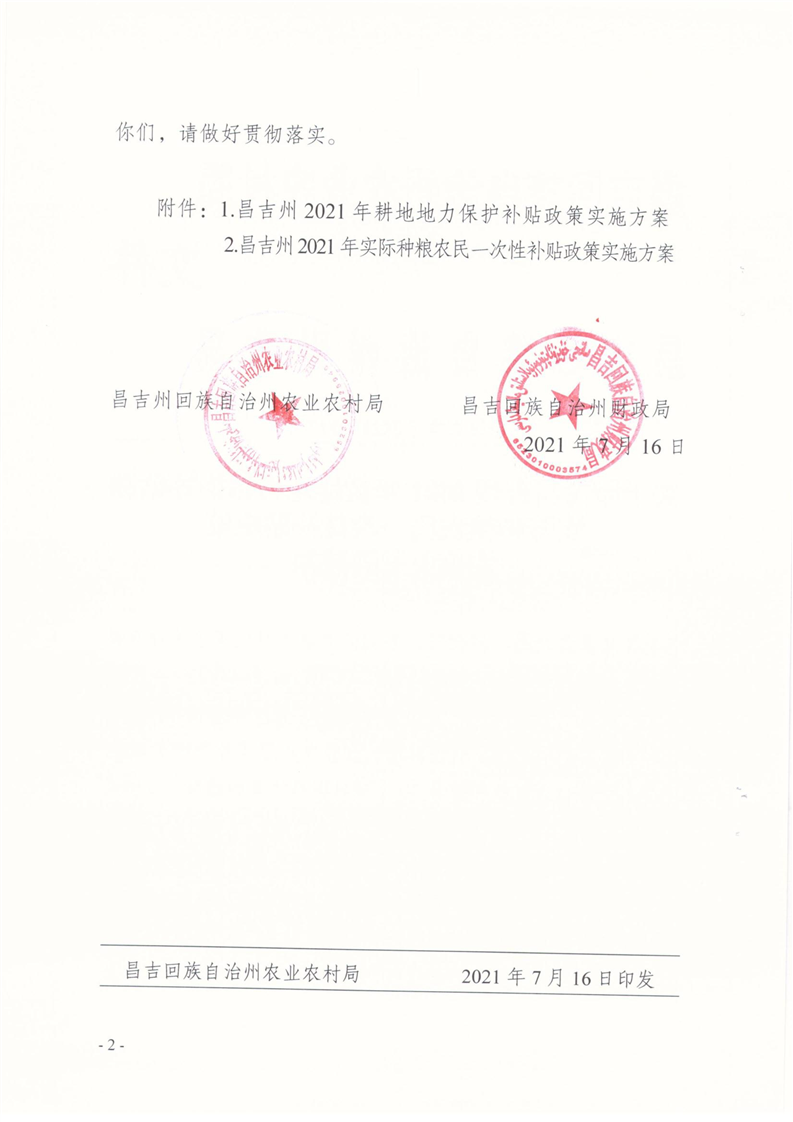 关于印发昌吉州2021年耕地地力保护补贴和实际种粮农民一次性补贴政策实施方案的通知