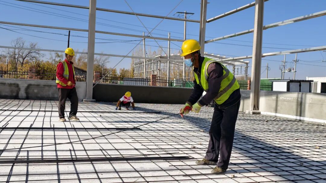 近日,吉木萨尔县老台乡西地村的库房建设项目施工现场,钢结构库房已初具雏形,施工人员正紧张有序地作业。