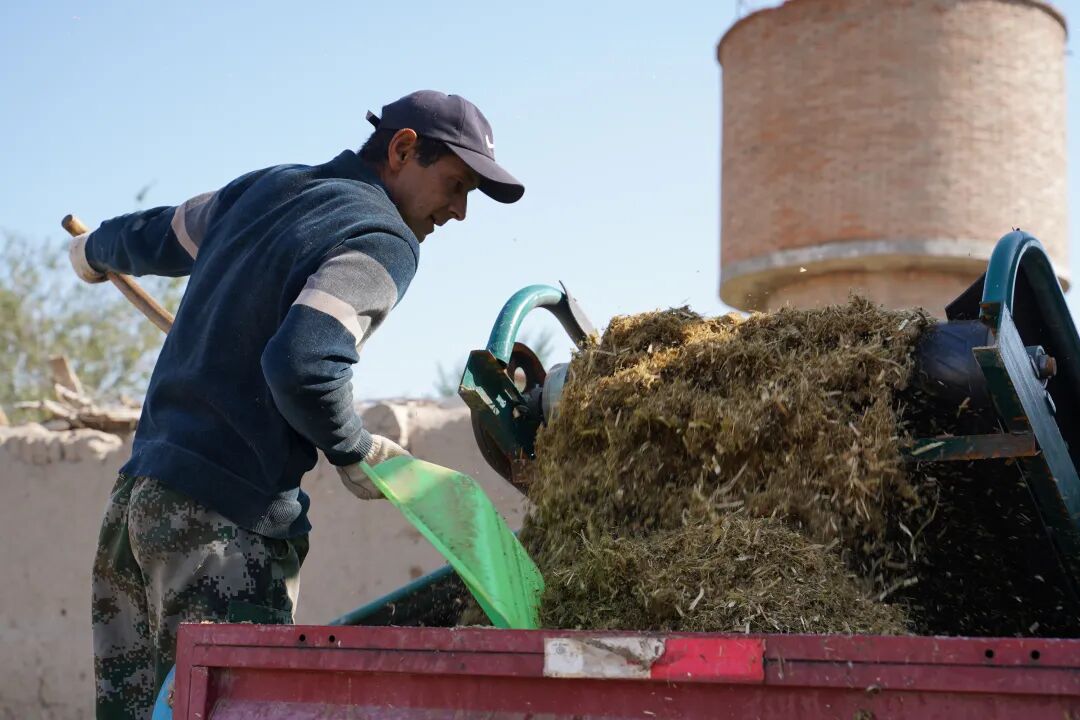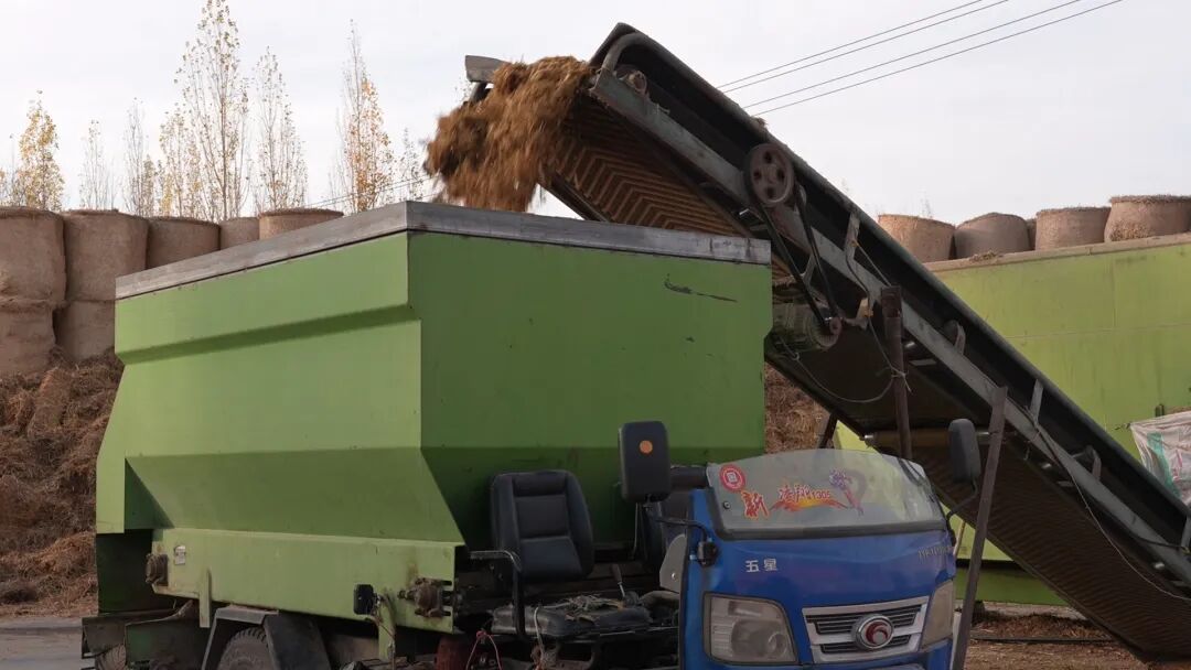 奇台县畜盛畜牧养殖专业合作社的养殖场同样忙碌,晾晒好的优质干草被送入进料口粉碎成均匀草末。作为自治区级示范社,该合作社自2013年成立以来,累计投资约6000万元,建有14座现代化圈舍,青贮池3座,现存栏牛3000头,羊800只。此次合作社共储备饲草料2.5万吨,其中小麦秸秆9000吨、玉米秸秆5000吨、玉米3000吨,还有8000吨青贮,足够牲畜越冬。