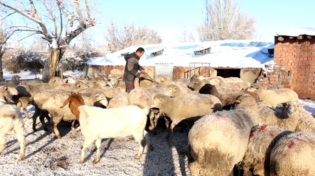 吉木萨尔县北庭镇西上湖村村民王迎春说:“我养了100多只生产母羊,下了20多只羊羔,预计还能生产100多只小羊羔,这几天天气比较冷,给圈舍里安装了电采暖等设取暖设备,圈里面温度也高了,这样羊羔成活率也高。”