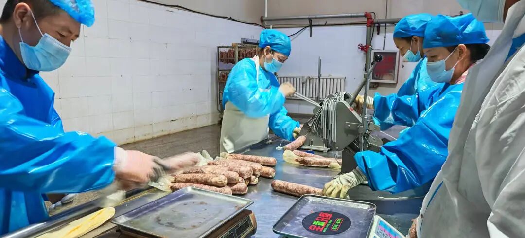 在新疆乐鼎元食品有限公司加工车间,工人们正忙着灌肠。