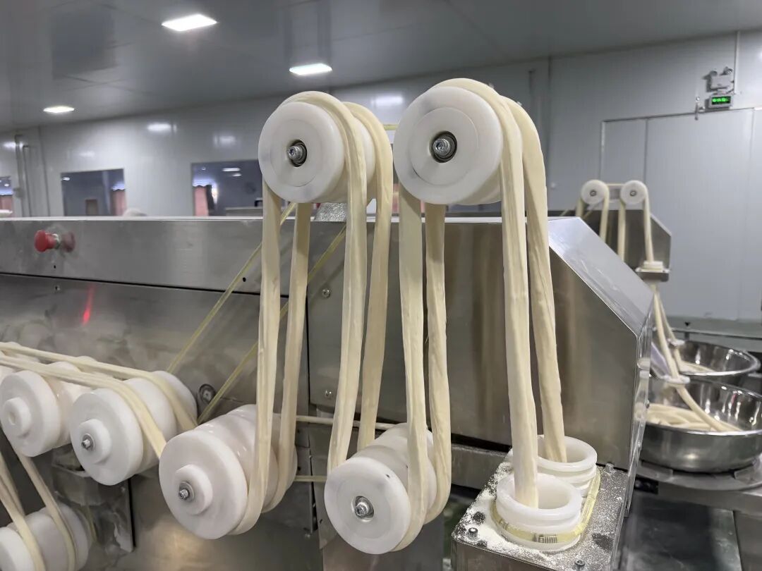 图为新疆丰驿食品发展有限公司拉面厂内,制面设备正在运转。 汪军 摄