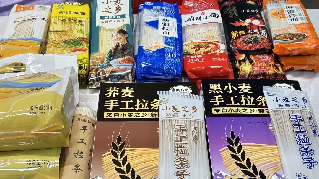 线上热销破千万,线下商超人气旺。奇台手工拉面早已成为本地百姓认可、外地消费者青睐的特色好物。在奇台县各大商超内,腰站子、麦子之乡等本土手工拉面品牌专属展区前,时常有顾客驻足挑选,仔细核对配料表、查看产品规格,本土消费者回购不断,年轻群体更是对新疆火鸡面等创新单品情有独钟。“试吃后认可产品品质才批量引进,上架以来销量稳居同类食材前列,既满足了本地人对家乡味的需求,也让外地游客能带走奇台特色。”一家人生鲜超市负责人王娟的话语,道出了奇台手工拉面的口碑底气。
