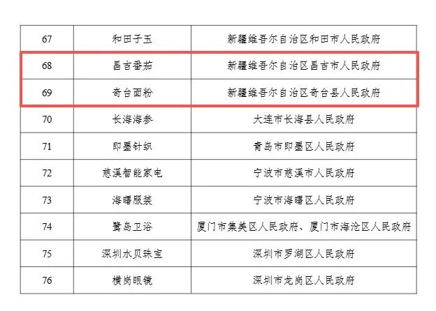 1月4日,工业和信息化部消费品工业司在工业和信息化部官网公示了2025年度中国消费名品名单,名单包含165个企业品牌、76个区域品牌和35个特定人群适用产品品牌。其中,昌吉番茄和奇台面粉入选区域品牌名单。