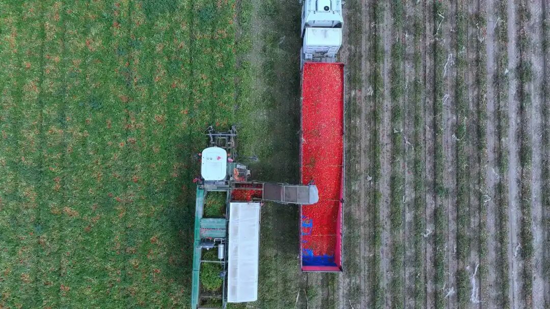 机械化采收番茄。魏鹏慧 摄“2025年,我们积极组织农技人员‘一对一’加强秋粮作物中后期水肥管理和病虫害防控指导,完成社会化服务项目,确保7.2万亩夏粮丰产丰收,单产提升5%以上,颗粒归仓。同时,举办阜康市2025年农民丰收节活动,有机融入农事体验、乡土美食品鉴、非遗文化体验、优质农产品展销等内容,着力打造集文化展示、旅游观光、消费体验于一体的乡村特色IP,吸引城市居民下乡,有效带动农民增收。”阜康市滋泥泉子镇党委书记陈春明说。智慧农业赋能种植业根基持续夯实。2025年阜康市总种植面积72.24万亩,粮经饲比1:2.35:0.01,粮食总产16.5万吨,小麦、玉米单产同比分别增长5.2%、5%。棉花种植面积46.94万亩,良种覆盖率超95%,总产23.2万吨;同步发展蔬菜、加工番茄、中草药种植,依托阜康阿魏原生境保护项目,带动甜叶菊等中草药规模化种植。2026年计划进一步调整种植结构,将粮经饲比优化为1:2.46:0.09,持续提升产业效益与抗风险能力。 深耕美丽乡村,绘就宜居宜业乡村新图景“十四五”期间,阜康市以人居环境整治为突破口,聚焦民生痛点打造和美乡村,一个个接地气、惠民生的项目落地生根,让村民幸福感持续提升。