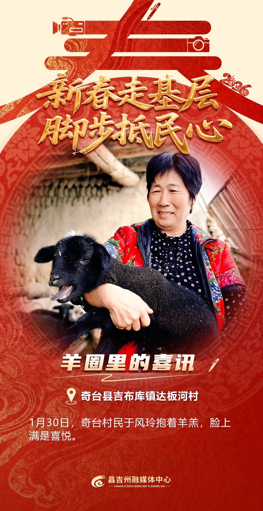 1月30日,奇台县吉布库镇达板河村白雪遍野、寒气逼人,村民王世军的羊圈却是暖意融融、生机盎然,不时传出羔羊清脆的咩咩声。