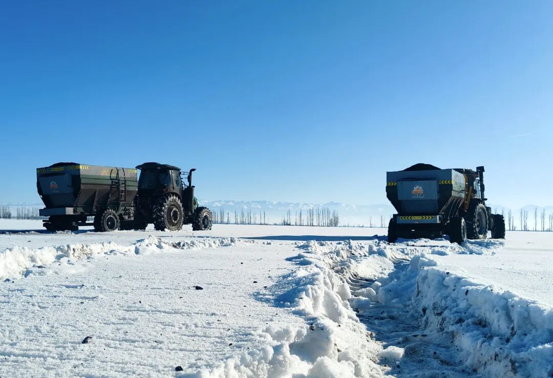 奇台县三个庄子镇土园仓村高标准农田内施肥机械正进行破雪撒肥作业。赵文渤 摄