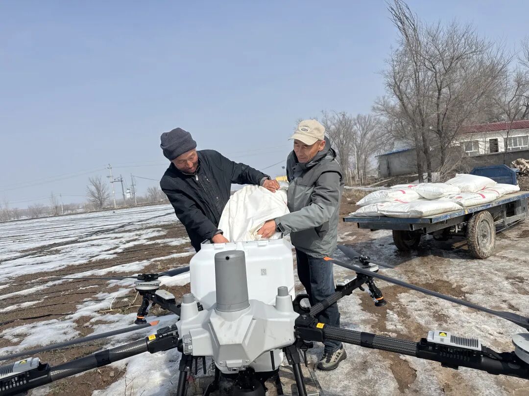 马云付说:“现在种麦子可省心了,我们施肥都用上了植保无人机,植保无人机撒得匀,用肥还特别省,半天时间就能干完。最近天气转暖,镇上的干部到地里来指导我们施返青肥,还教了特别多的实用技术。我把这些技术学好、用好,把今年的小麦管好,争取今年有个好收成。”植保无人机操作手李志华说:“我们现在用的大疆100S植保无人机,一次可以装化肥90公斤,作业宽幅是9米,一天能作业1000到1200亩。这台机子搭载了北斗导航,能按照预设的航线均匀低空作业,撒肥料均匀、不会漏喷,既高效又便捷,覆盖面也广。用它给冬小麦撒肥,能助力冬小麦快速返青。”