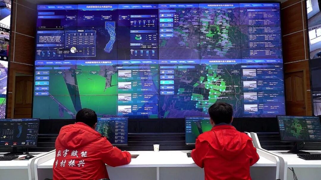 在玛纳斯县数字农业中心,技术人员正在通过智慧农业大数据平台监测数字农田的气象、墒情、苗情、虫情。资料图片