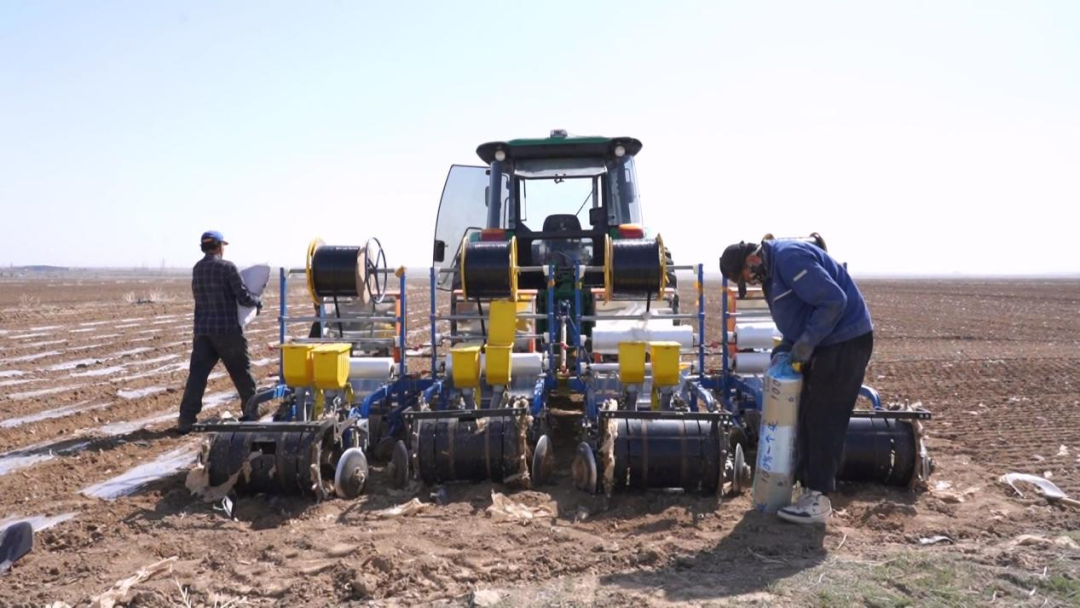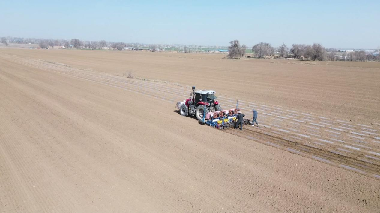 近日,在木垒县新户镇的鹰嘴豆扩繁基地,农户们围在播种机旁忙碌着,有的将一袋袋金黄的“品鹰一号”鹰嘴豆种子倒入种箱,有的将成卷的地膜稳稳地安放到覆膜装置上。伴随着机器的轰鸣声,播种机在田间来回穿梭,播种、覆膜一气呵成。今年,木垒县重点扩繁“品鹰一号”1200亩、“天鹰一号”8000亩。这两个新品种经过多年多点区域试验和严格审定,具有自主知识产权,从源头上解决了种源依赖外部、品种质量不稳等问题,为全县鹰嘴豆生产筑牢了种业安全防线。