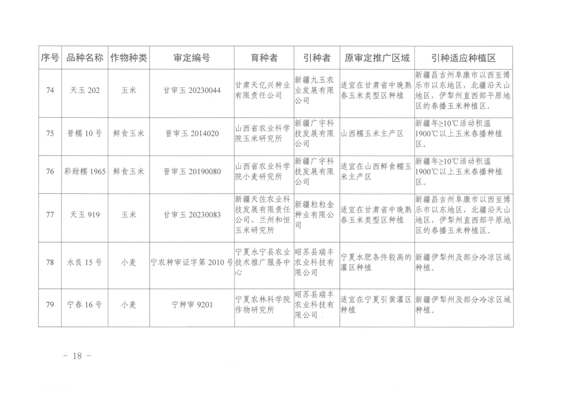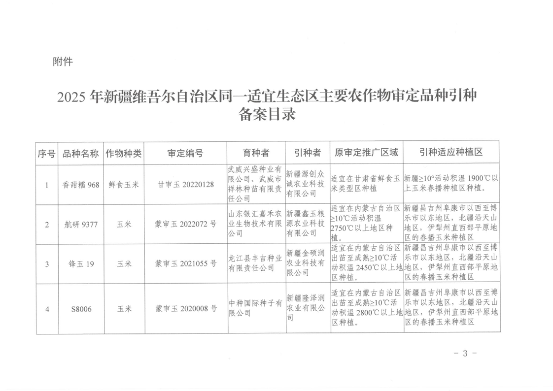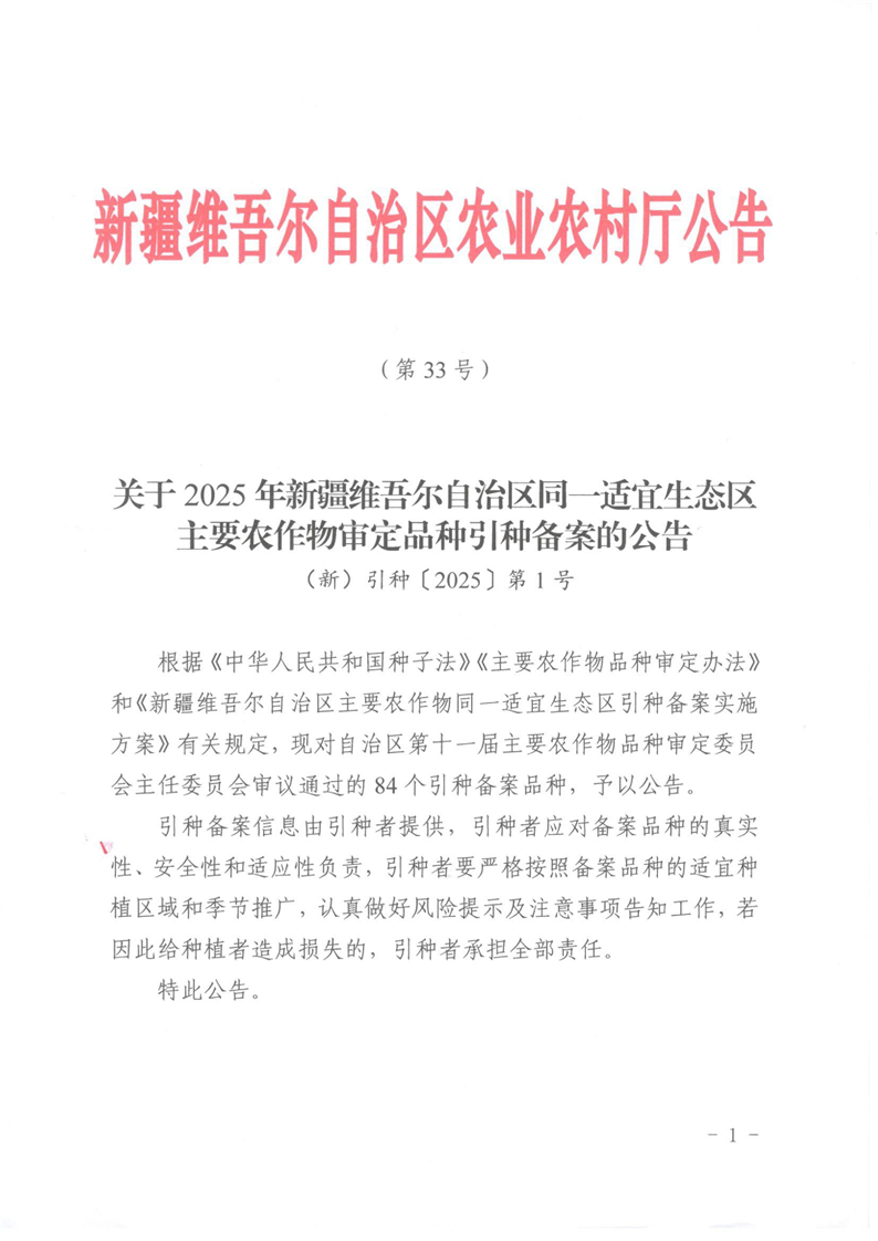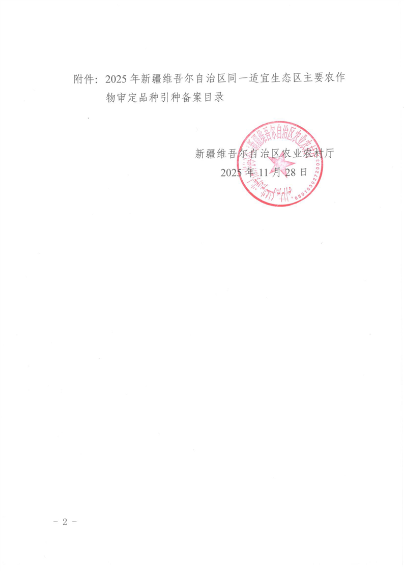 关于2025年新疆维吾尔自治区同一适宜生态区主要农作物审定品种引种备案的公告