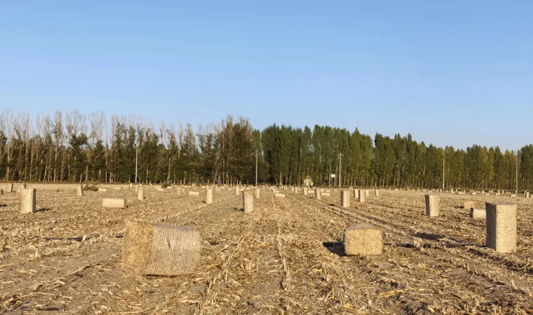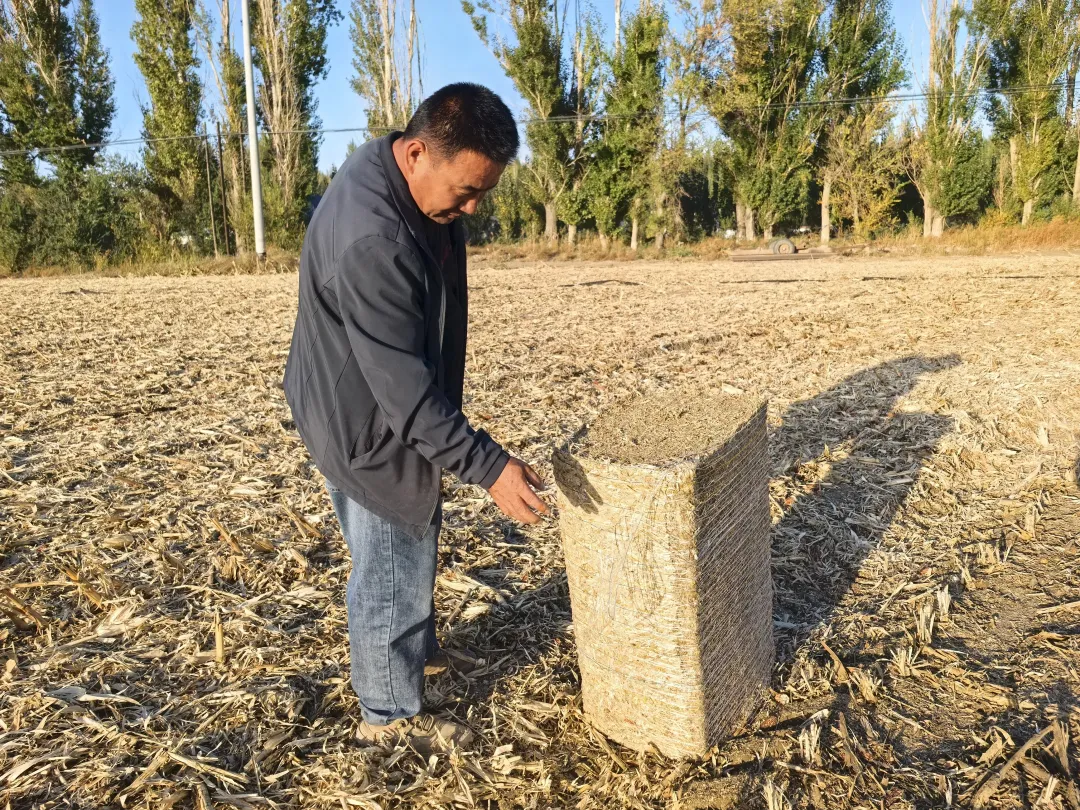 在吉木萨尔县二工镇、庆阳湖乡、北庭镇等玉米主产区,这样的场景随处可见。秸秆打包离田后,不仅消除了冬季火灾隐患,改善了人居环境,更形成了“秸秆饲料化—养殖增收”的循环链条,为生态农业发展注入动力。