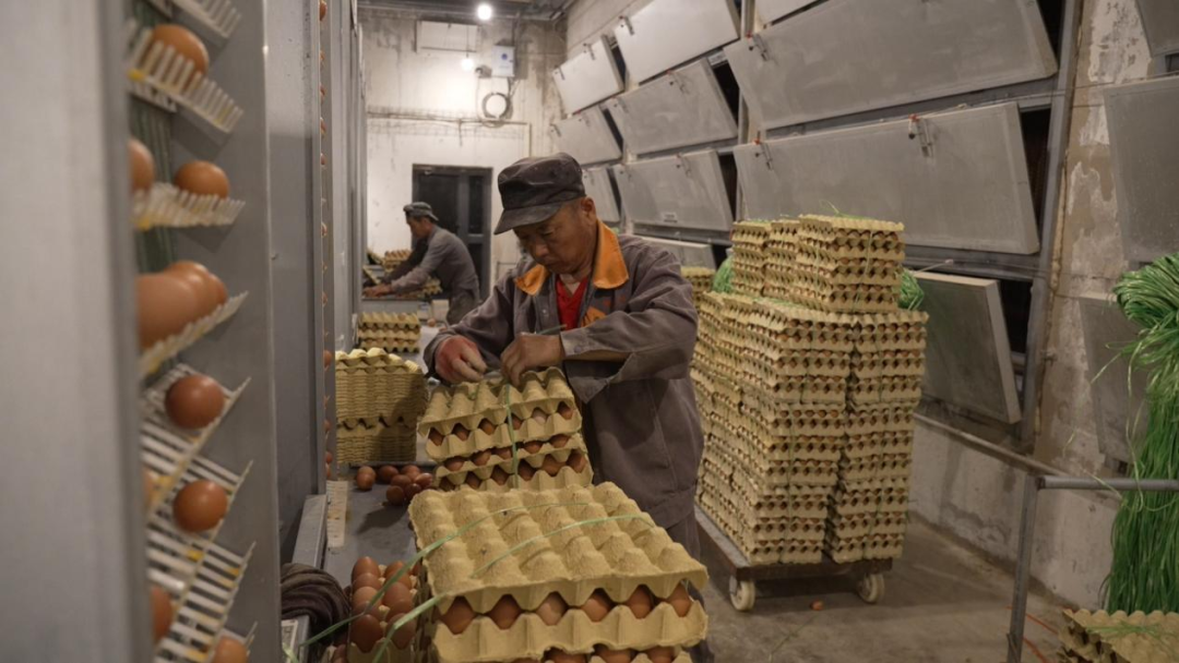 “手头松活了,还得感谢合作社!” 在养殖厂拌料车间,61岁的刘秀芝正和老伴杜西发手脚麻利地翻拌饲料,谈及如今的生活,老人脸上满是笑意。她告诉记者,家里40亩土地流转后,老两口本想靠零散打工补贴家用,2024年1月,两人“幸运”地走进成为蛋鸡养殖厂工人,每月合计9000元的工资让日子越过越有奔头,“没有合作社就没有这个蛋鸡厂,我们哪来这么稳定的收入!”