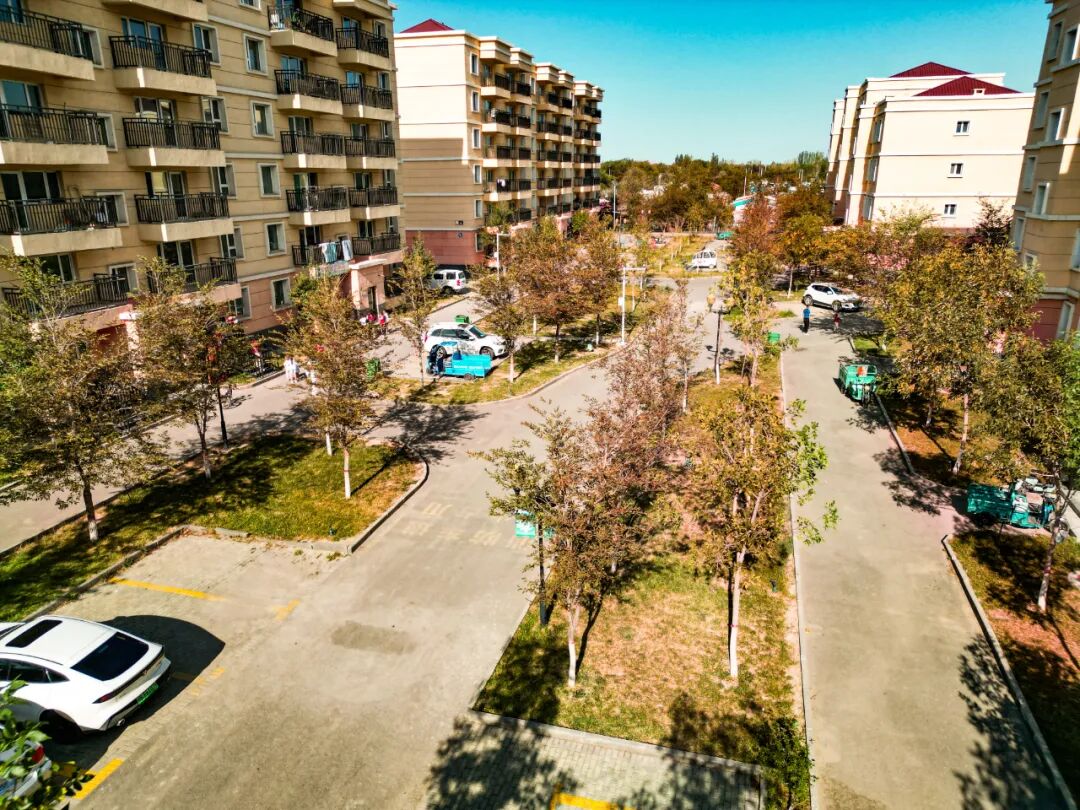 10月19日,昌吉市阿什里乡天鹅小镇停车场、绿化带等设施一应俱全。记者常谊谊 摄