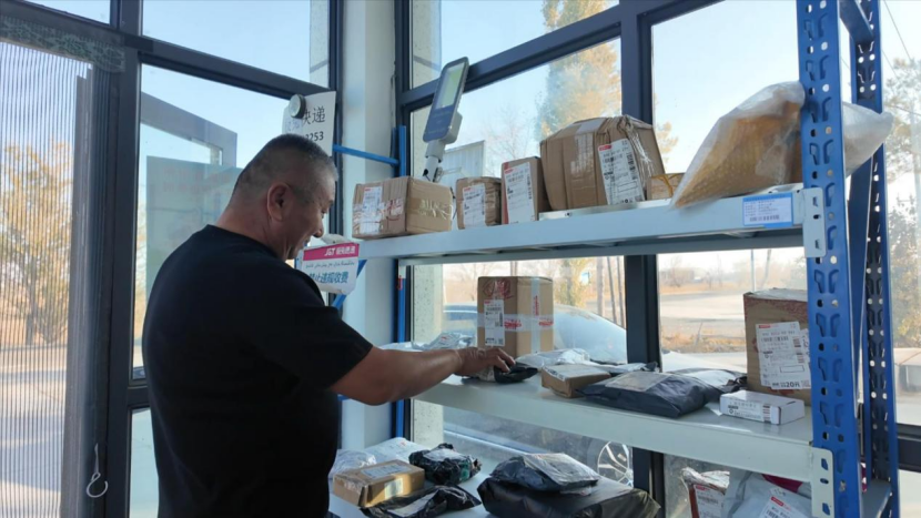 11月6日,碧流河镇西戈壁村电子商务服务网点负责人王海云在自家经营的超市里整理货架上的快递包裹。“咱这个服务站,别看地方不大,现在可是村里最热闹的地方之一。每天从县里物流中心来的包裹都有上百件,从以前的几天一送,到现在天天直达。”王海云告诉记者,乡亲们不仅能方便地取快递,更重要的是,他们自家养的牛羊肉、种的蔬菜水果,也能通过服务网点进行打包、贴单,直接发往全国各地。