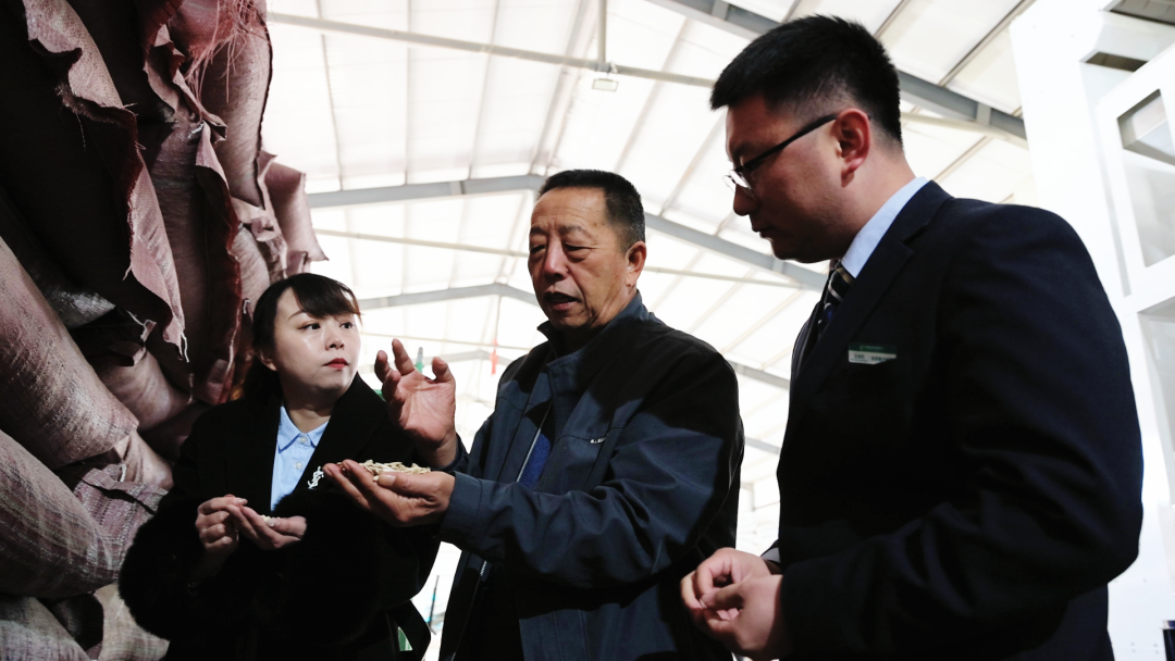 合作社内,银行工作人员对闫新虎的经营规模、农资采购等情况进行详细了解。张新珍 摄
