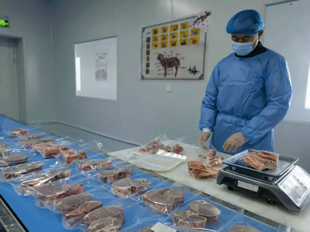 在天山塔韵牧源牛羊肉分割厂的生产车间,恒温恒湿的环境中,工人们正按照标准化流程对羊肉进行精细分割、真空包装。这座总投资200万元的加工厂,配备了分割车间、速冻库、冷藏库等完备设施,实现了从屠宰到入库的全流程规范化作业,将原本单一的鲜肉加工成里脊、肋排、肉卷等多种产品,提升附加值达30%。“通过‘线上电商平台+线下直供餐厅、酒店’双渠道打开销路,实现了产品从‘原生态’向‘精品化’转变。”车间负责人勉佳利说,凭借“天山雪水喂养”卖点及48小时冷链直达服务打开市场销往上海、福建、山东等地,带动8名村民就业,月收入6000余元。