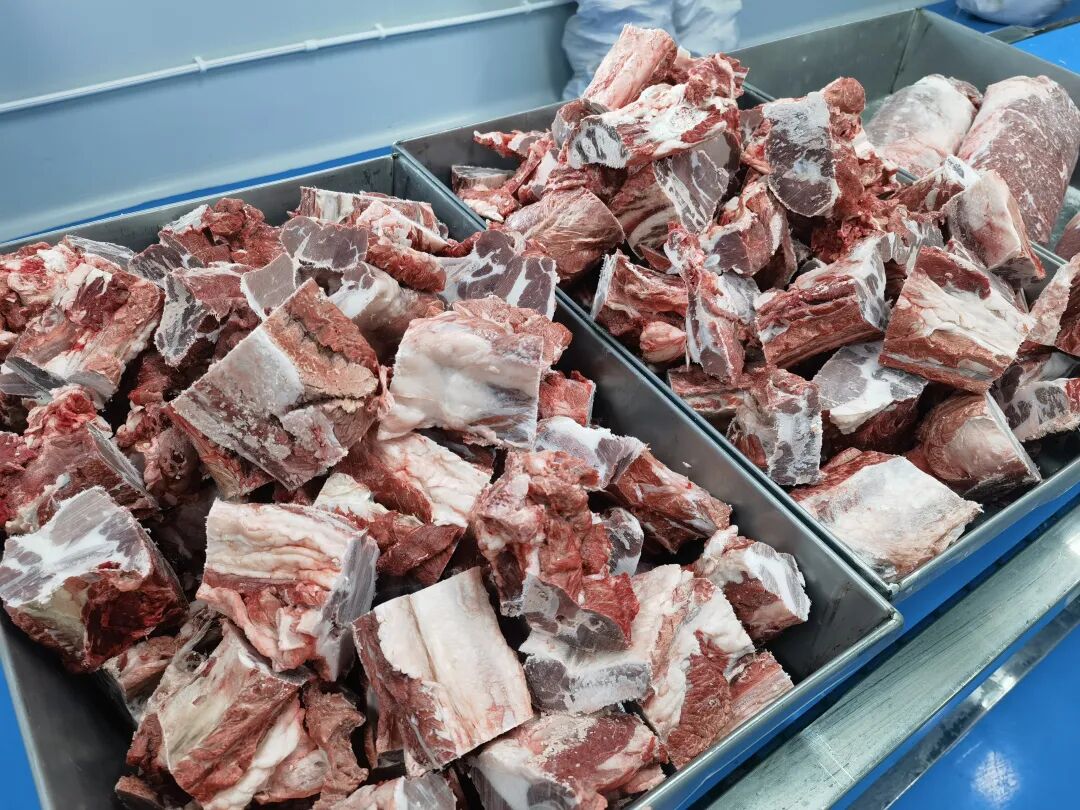 天山塔韵牧源牛羊肉分割厂已分割好的牛羊肉。董丽娟 摄