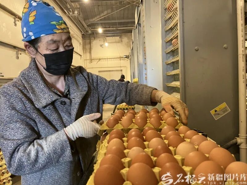 1月21日,在奇台县科禽禾蛋鸡养殖有限公司智能化养殖场,员工正在分装鸡蛋。通讯员谢甜 摄