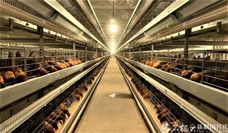1月21日,奇台县科禽禾蛋鸡养殖有限公司智能化养鸡场,一排排鸡笼整齐排列。通讯员谢甜 摄